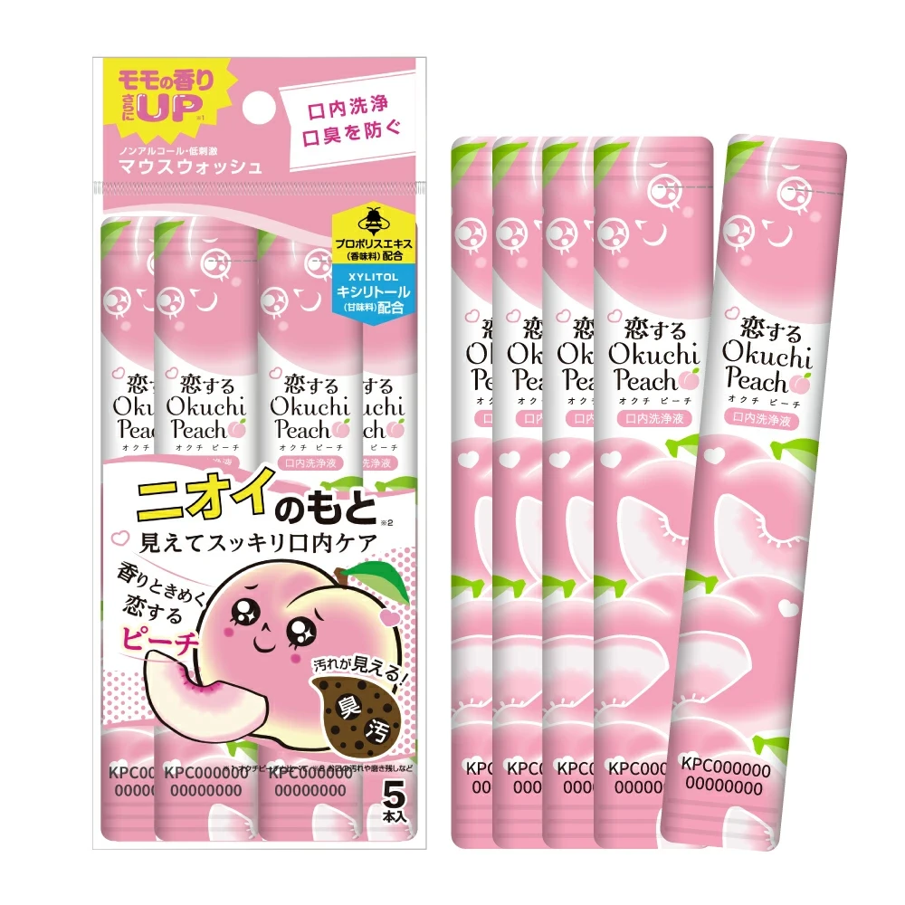 بيتاتو أوكوتشي غسول فم منعش برائحة الخوخ، 11 مل × 5 أعواد، صنع في اليابان. تركيبة خالية من الكحول مع البروبوليس ومستخلص أوراق الشاي، تزيل البقايا والروائح الكريهة، وتحارب البكتيريا، وتحافظ على انتعاش النفس برائحة الخوخ الحلوة في عبوات عملية للاستخدام الفردي.